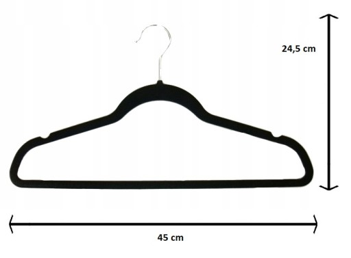 znajdzie zastosowanie w każdej szafie czy garderobie. Praktyczny zestaw sprawdzi się także do ekspozycji odzieży w sklepach i butikach. Produkt został pokryty welurem –miękkim materiałem, który sprawia, że zawieszona odzież jest zabezpieczona przed zsuwaniem. Welur chroni także przed uszkodzeniem delikatnych tkanin, takich jak jedwab.
