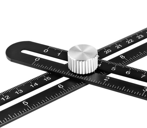 - Szablon składa się z 3 ramion wykonanych z wytrzymałego aluminium. Na każdym z nich znajduje się trwała miarka o długości 305 mm/12 inch