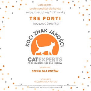Szelki dla kotów marki TRE PONTI zdobyły uznanie i CERTYFIKAT - KOCI ZNAK JAKOŚCI od kocich behawiorystów z CatExperts