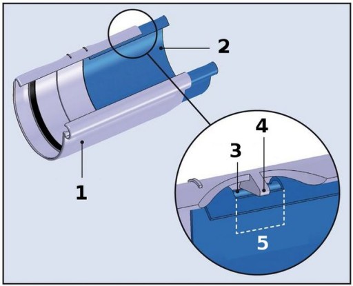 Rynny PCV Marley to system uszczelkowy z zabezpieczeniem "pióro-wpust". Pióro łącznika wprowadzane jest do wpustu, wycięcia w tylnej wulstwie rynny. Takie połączenie ogranicza skutki wydłużania i kurczenia rynny przy wahaniach temperatury.
