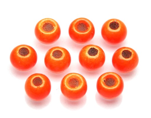 Koraliki mosiężne w kolorze fluo pomarańczowym.