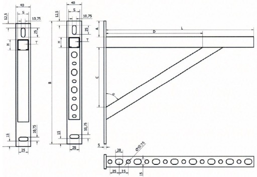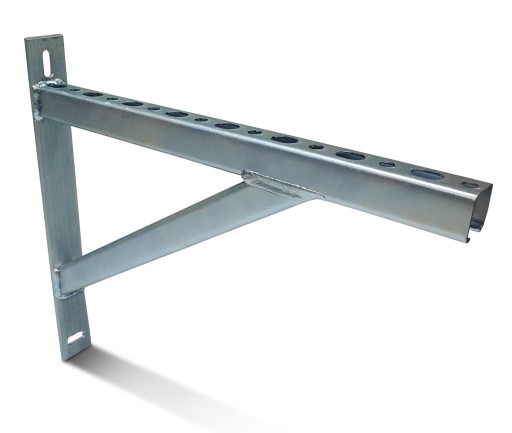 Dzięki dodatkowej podporze skośnej jest wstanie przenieść większe obciążania, oraz utrzymywać instalacje w większej odległości od ściany.