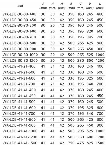 Wspornik ścienny perforowany o symbolu WK-LDB-30-30-700