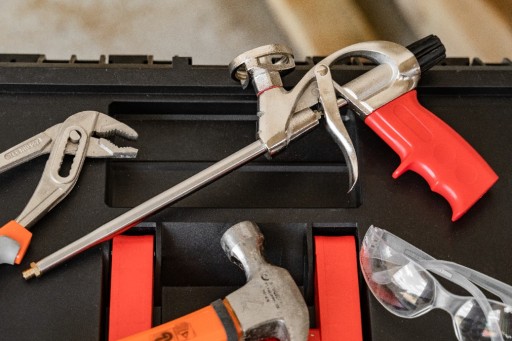 • Puszkę z pianką wkręca się w specjalnie wykonany otwór o standardowym rozmiarze. Pistolet wykorzystuje do działania dźwignię, która po naciśnięciu cyngla wypycha piankę przez lufę.