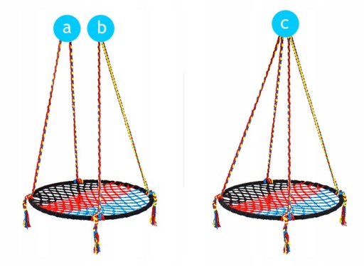 - liny zamontowane parami pozwalają na bujanie huśtawki do przodu i do tyłu (tak jak w klasycznej wersji)