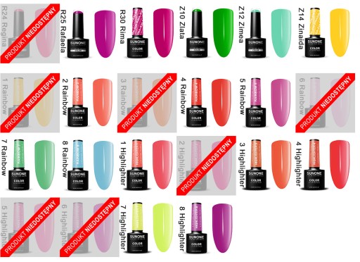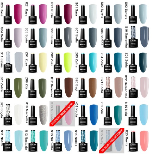 Bogata paleta kolorystyczna lakierów pozwala na wybranie wymarzonej barwy do stworzenia stylizacji. Lakiery SunOne to:
