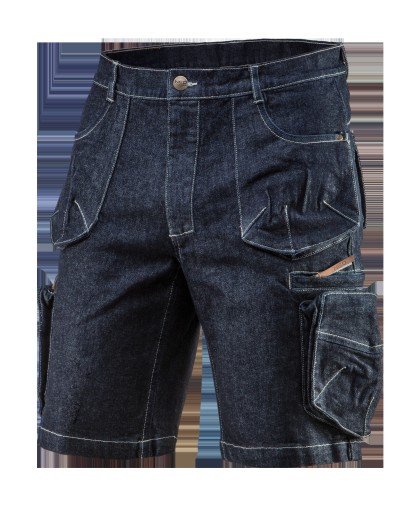 Krótkie spodenki DENIM,dodatek elastanu zapewnia lepsze dopasowanie i większy komfort noszenia, wielofunkcyjne i pojemne kieszenie, w kroku panel podnoszący komfort użytkowania, skórzane wszywki z logo, wewnętrzna wszywka imienna, unikalny projekt własny, rozmiar L