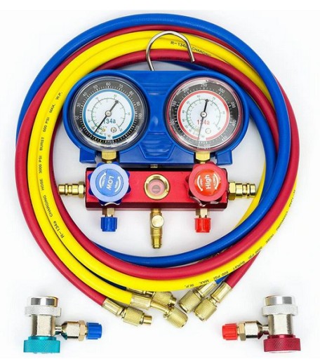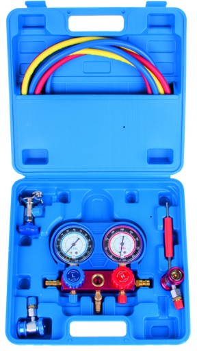 - Zestaw do napełniania i sprawdzania szczelności układów klimatyzacji zarówno do samochodowej jak i stacjonarnej