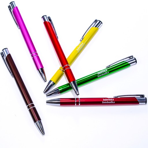 2b) logotypy i/lub informację, co mamy wygrawerować i na jakich kolorach długopisów (kolory możemy mieszać co 50 szt.) - logotypy prosimy wysyłać w wersji wektorowej (.pdf; .cdr; .ai));