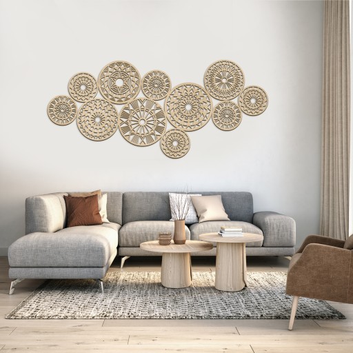 Ażurowe, drewniane panele AFRYKA komplet 11 sztuk to unikalna dekoracja ścienna.