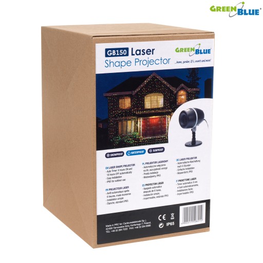 Reflektor laserowy TYSIĄCE POJEDYNCZYCH KROPEK! Nowoczesny projektor laserowy firmy GreenBlue GB150 zewnętrzny to nowość na rynku ozdób świątecznych. Emitowane przez urządzenie światło laserowe tworzy niezwykłą prezentację wizualną na ścianach budynków i innych oświetlanych powierzchniach.