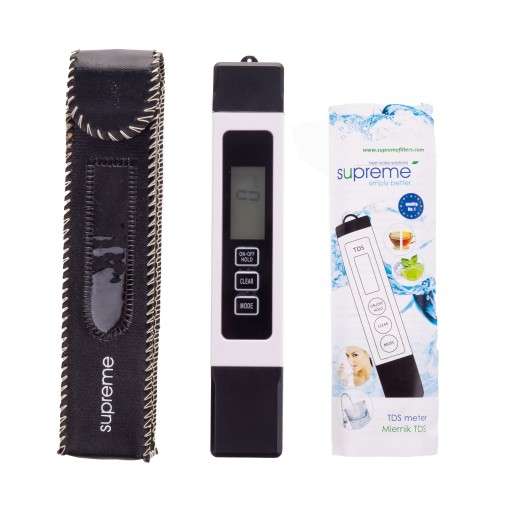 Nowoczesny, profesjonalny, elektroniczny miernik TDS marki SUPREME, umożliwia bardzo dokładny pomiar TDS-u (ppm), przewodności (μm)