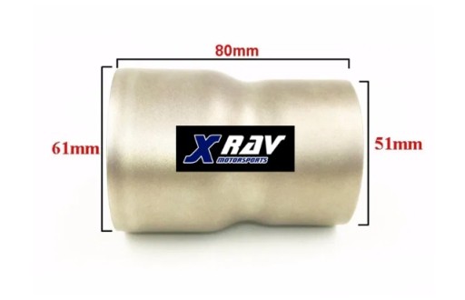 Redukcja służąca do podłączenia wydechów motocyklowych ze średnicą 51mm do motocykli ze średnicą zbliżoną do 61mm.