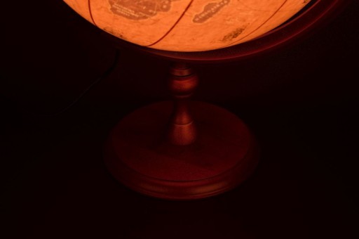 Podświetlony globus prezentuje się doskonale w zaciemnionym otoczeniu i może służyć jako dyskretne i urokliwe źródło światła.