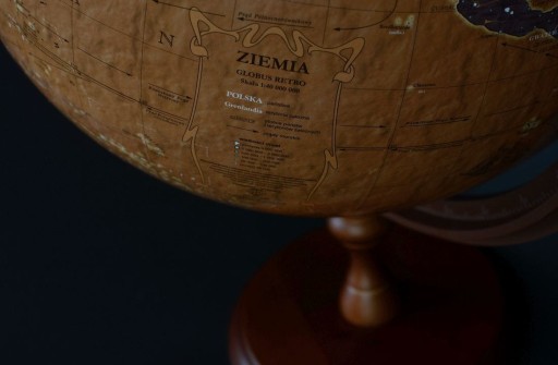 Dopasowany kolorystycznie meridian z ciemnobrązowego plastiku, solidna podstawa z ciemnobrązowego drewna, zgrabna, smukła nóżka podkreśla stylistyczne walory globusa.