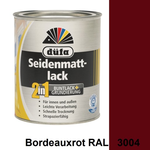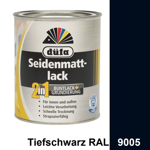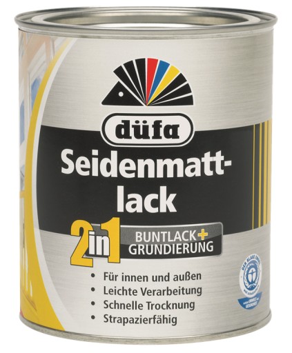 Lakier akrylowy do lakierowania dekoracyjnego i ochronnego obszarów wewnątrz i na zewnątrz. Znakomicie nadaje się do powłok na zagruntowanym drewnie i metalu, na zdatnych do malowania tworzywach sztucznych (np. twarde PVC), podłożach mineralnych, grzejnikach ocieplanych ciepłą wodą (odcienie tylko kolorowe) jak i jako powłoka renowacyjna na wszelkich starych, nośnych powłokach malarskich. Wysuszona powłoka jest odpowiednia do wykorzystania w zabawkach dziecięcych zgodnie z normą DIN EN 71.3. düfa Acryl Seidenmattlack został odznaczony niebieskim aniołem ("der Blaue Engel").