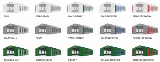 biały, biało-szary, biało-zielony, biało-niebieski, biało-czerwony, szaro-biały, szary, szaro-zielony, szaro-niebieski, szaro-czerwony, zielono-biały, zielono-szary, zielony, zielono-niebieski, zielono-czerwony