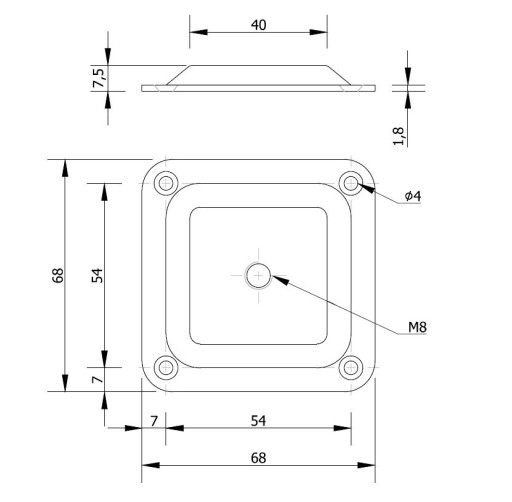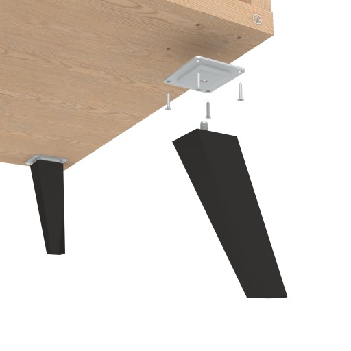 Noga bukowa lakierowana w kształcie skośnego trapezu wraz ze stalową płytką do przykręcenia na 4 otwory. Wraz z nóżką można zastosować wkręty stożkowe o rozmiarze 3,5 w celu przykręcenia nóżki do mebla. Noga posiada wkręconą mufę M8 x 24 mm, oraz dołączoną płytkę i szpilkę metryczną. Skos nóżki wynosi około 10%. Nóżki są polakierowane do gotowe do montażu. Nóżka posiada zamontowany filc samoprzylepny, który zabezpiecza podłogę przed porysowaniem.