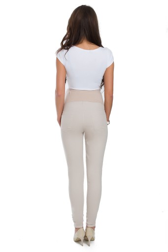 Z tyłu naszyte kieszonki, nogawki wąskie.