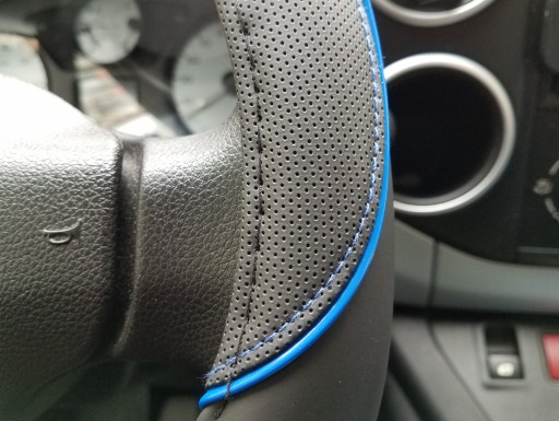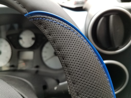 Nakładka ma strukturę perforowaną - zapobiega ślizganiu się rąk po kierownicy.