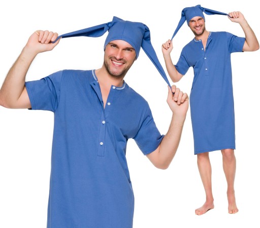 Klasyczna koszula nocna dla Panów w zestawie ze szlafmycą.