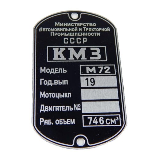 Tabliczka znamionowa do motocykla M-72 produkcji Kijowskiej fabryki motocyklowej