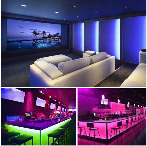 Cały zestaw pozwala na zdalne sterowanie i zmianę kolorów i rodzajów świecenia (stałe, zmienne, przechodzenie itd.)