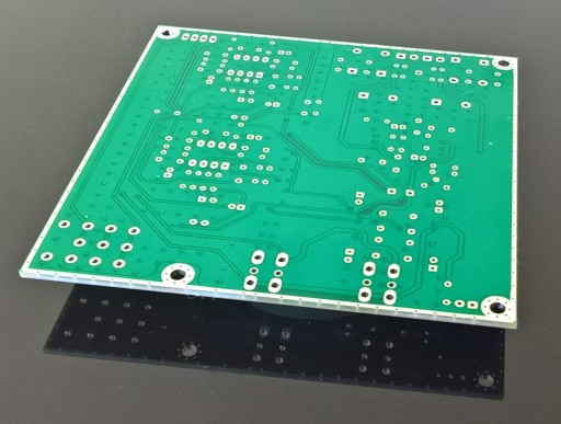 Płytka dwustronna, metalizacja otworów, soldermaska, wymiary płytki 100x100 mm.