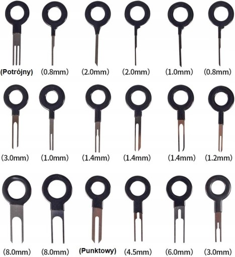 Zawiera też niezbędne rurkowe wypychacze aż w 6 wymiarach! (średnice 2 - 6,2 mm) które czynią z kompletu uniwersalny zestaw do napraw każdego rodzaju wiązki.