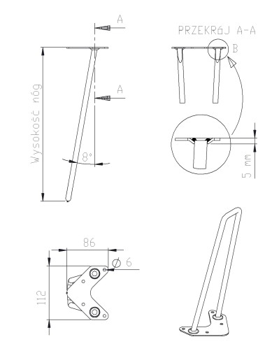 Noga wzorowana na hairpin - nowy rodzaj - z pręta D=10mm ; blacha #3mm; 20-30 cm wysokość.