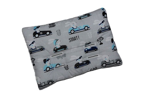 Poduszka nie opada za pleckami dziecka. Posiada dwa rzędy otworków na szelki. Jest niezastąpiona podczas drzemki w trakcie spaceru. Można ją również zakładać w leżaczkach lub fotelikach.