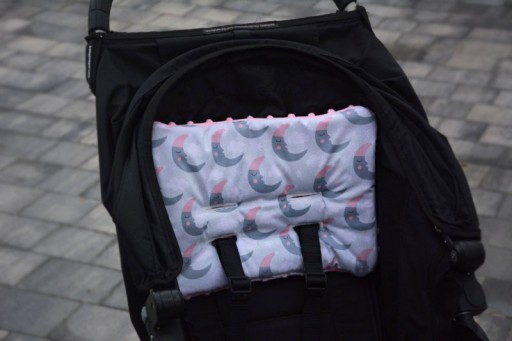 Prostokątna, dwustronna poduszeczka z otworami na szelki do spacerówki