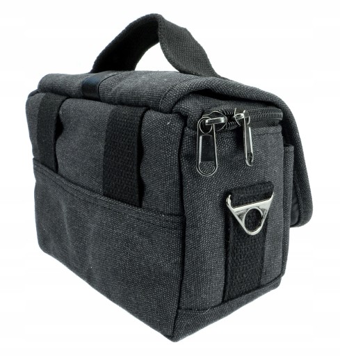 Torba wyposażona jest w metalowe uchwyty do paska oraz regulowany na dlugosc pasek