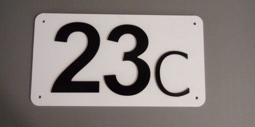 Wielkość tabliczki: 30cm wysokości (cyfry naniesione na niej pomniejszone o około 5cm). Długość dobierana jest w zależności od wymaganego napisu