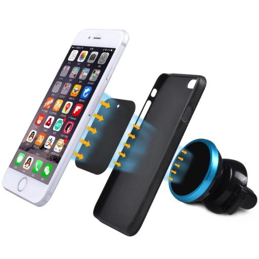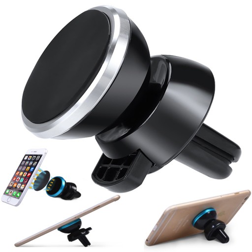 Uniwersalny, magnetyczny samochodowy uchwyt do urządzeń mobilnych. Montaż w kabinową kratkę wentylacyjną, silny magnes oraz 2 rozmiary metalowych cienkich blaszek, obracana głowica 360°. Możliwość stosowania uchwytu jako podstawki, zgodność z większością modeli smartfonów, telefonów komórkowych i mobilnych nawigacji. Szybka i łatwa bez narzędziowa instalacja i deinstalacja.