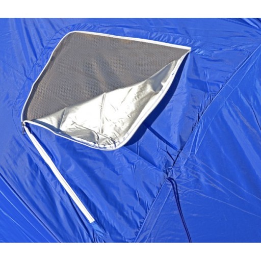Posiada dwa okna zamykane na zamek z dodatkową warstwą moskitiery oraz otwory wentylacyjne wokół górnego czubka parasolu.