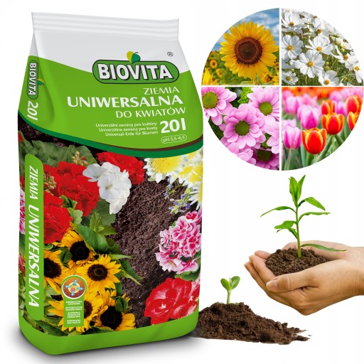 Ziemia uniwersalna do kwiatów firmy BIOVITA, to podłoże przeznaczone głównie do kwiatów doniczkowych i rabatowych, ale również może być zastosowane w ogrodzie do drzew i krzewów owocowych oraz ozdobnych.