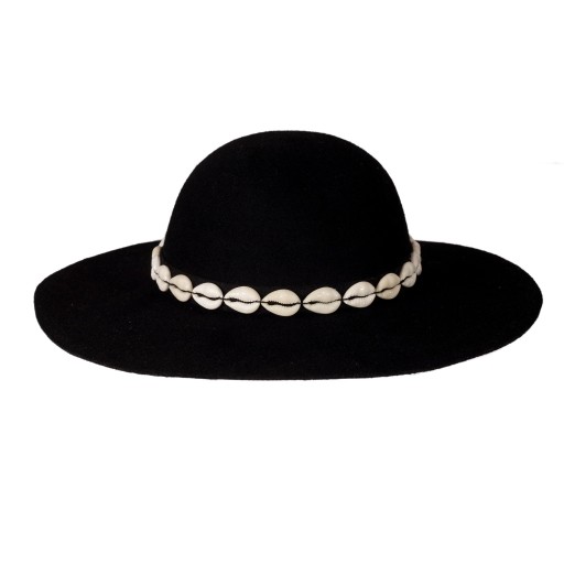 Tradycyjny kapelusz góralski wykonany ze 100% wełny. Ozdobiony czarnym paskiem na którym znajdują się ręcznie przyszywane muszelki zwane przez górali kostkami oraz ponad 30-sto centymetrowym piórem NATURALNYM.