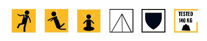 TESTED 140 KG: produkt testowany przy obciążeniu 140 kg.