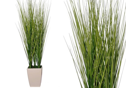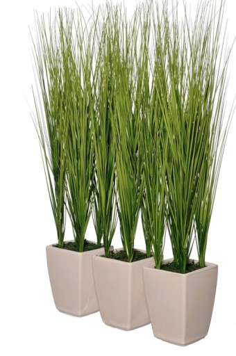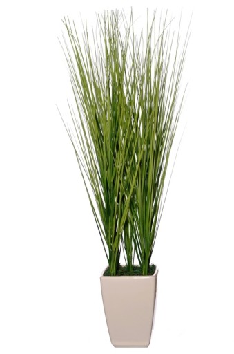 Kompozycja sztucznej trawy w kolorze ZIELONYM w doniczce prostokątnej koloru ECRU.