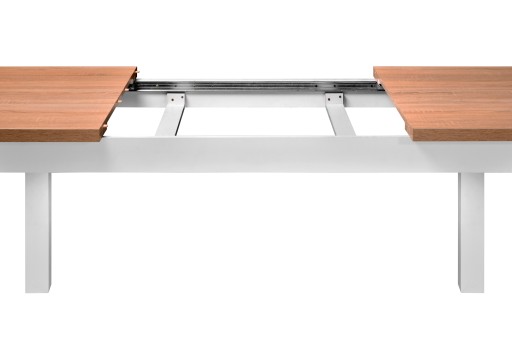 Piękny i praktyczny stół, który stanie się nie tylko sercem każdej kuchni czy salonu, ale i jego ozdobą, dzięki solidnemu wykonaniu i prostym nogom z prawdziwego drewna bukowego. Blat stołu jest wykonany z płyty laminowanej, dostępny w różnych kolorach oraz w trzech różnych grubościach- 18 cm, 36 cm oraz 54 cm, z możliwością rozłożenia i wydłużenia całego stołu o 80 cm. [Grubość blatu 54 cm nie występuje w kolorze szarym]. Stół oferowany jest w różnych grubościach nóg- 7 cm lub 8 cm.
