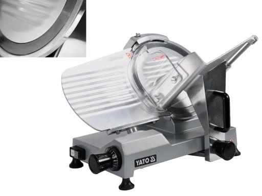 Krajalnica elektryczna marki YATO umożliwi wygodne i szybkie krojenie wędlin, serów oraz innych artykułów spożywczych na plastry. Sprawdzi się doskonale zarówno w restauracjach, lokalach gastronomicznych, placówkach handlowych czy firmach cateringowych, jak również w warunkach domowych. Urządzenie posiada certyfikat CE i spełnia wymagania Sanepidu.