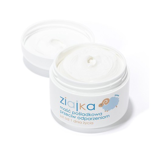 Maść ziajka przeznaczona do pielęgnacji delikatnych pośladków niemowlęcia.