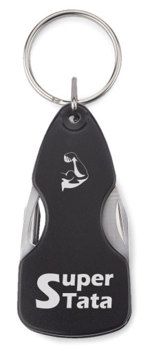 Brelok wielofunkcyjny składający się z otwieracza, nożyka, śrubokręta