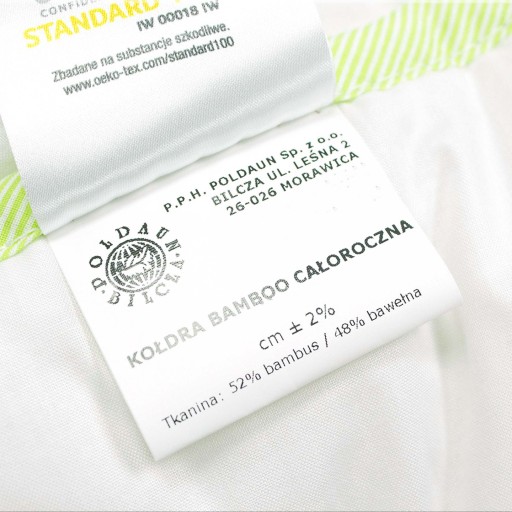Kołdra oddychająca z bawełny i bambusa spełni oczekiwania osób, którym zależy na jakości i trwałości pościeli. Została wykonana przez polską firmę stosującą najwyższe standardy produkcji. W procesie wytwarzania włókien bambusowych nie wykorzystano żadnych środków chemicznych – brak szkodliwych substancji jest potwierdzony certyfikatem Oeko-Tex i Świadectwem Jakości Zdrowotnej PZH.