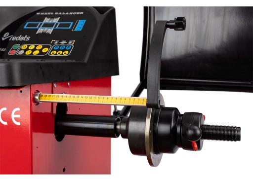 Sama wyważarka obsługuje koła o maksymalnej średnicy do 22” i za pomocą wysięgnika wprowadzi automatycznie parametry kół o średnicy do 18”, ale w przypadku kół powyżej 18” wymiary ustawiamy ręcznie.
