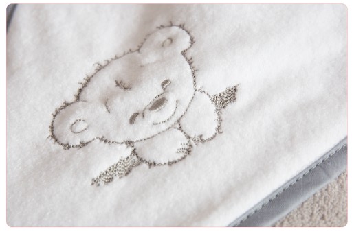 Ręcznik z kapturkiem pozwala na dokładne otulenie dziecka po kąpieli. Gruba termofrotta zapewnia wysoką chłonność oraz nie podrażnia delikatnej skóry dziecka. Kapturek ozdobiony jest pięknym, niepowtarzalnym haftem oraz subtelną lamówką. Duży rozmiar ręcznika umożliwia dokładne otulenie dziecka.