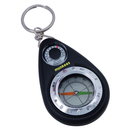 Kompaktowy gadżet jest wyposażony w kompas i termometr. Brelok posiada metalowe oczko, dzięki któremu możliwe jest przyczepienie go do kluczy. Niewielkie wymiary sprawiają, że jest wygodny w użytkowaniu. Kompas Munkees będzie doskonałym gadżetem, idealnie sprawdzi się też jako prezent.