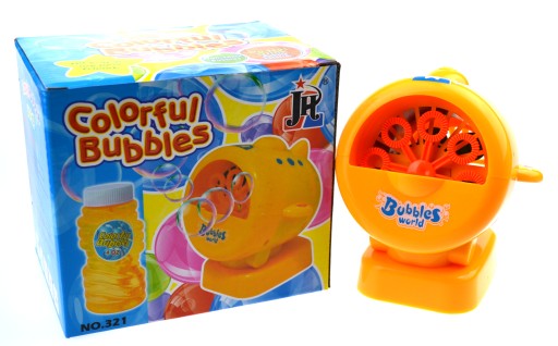 Wystarczy wlać płyn do pojemnika pod tarczą z otworami, nacisnąć przycisk i bańki lecą przed siebie.