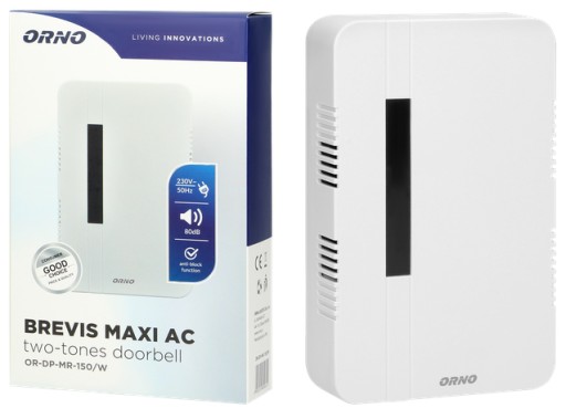 Dzwonek dwutonowy BREVIS MAXI AC to prosty w montażu i wygodny w użyciu dzwonek elektromechaniczny z funkcją przeciwblokady łącznika. Przeznaczony do zastosowana w pomieszczeniach zamkniętych z instalacją dzwonkową prądu zmiennego 230V, np. w domu, mieszkaniu, sklepie itd.